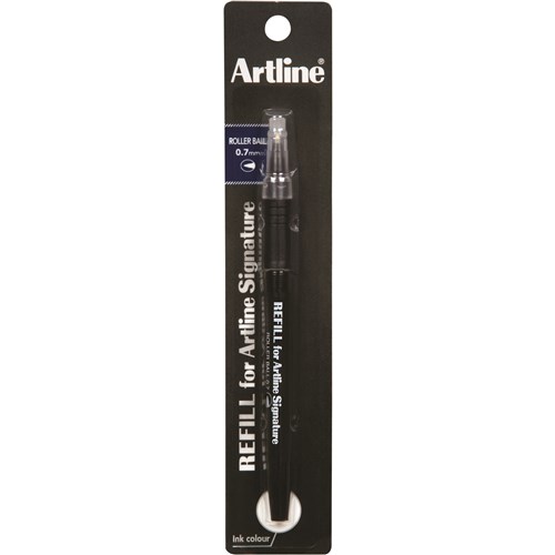 Refill black for Artline Signature Roller Ball pens. 0.7mm roller ball nib. Suitable for everyday writing and making an impression when it counts. Over 2000 metres write out distance.