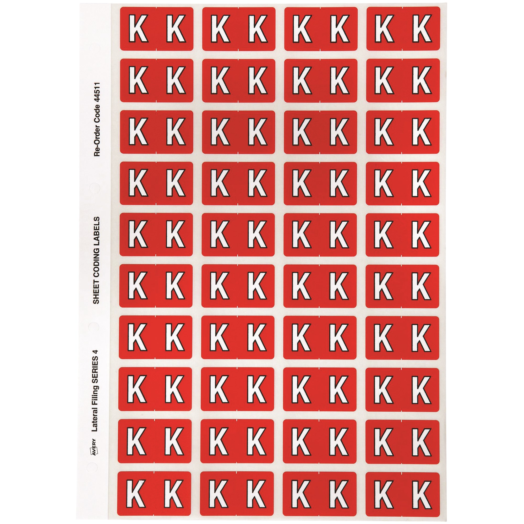 Avery Alphabet Coding Label K Side Tab 25x42mm Red Pack Of 240