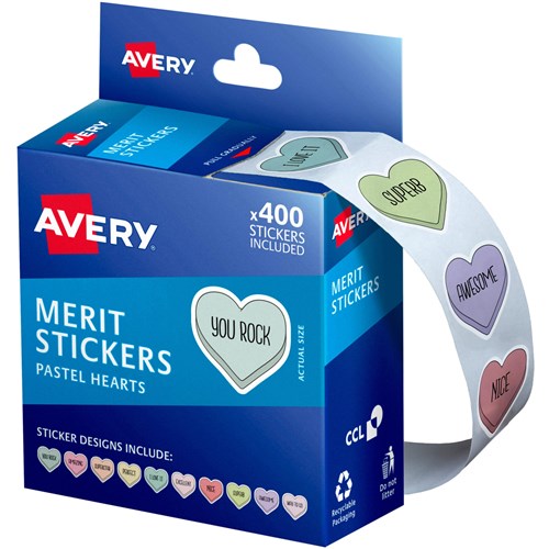 Avery Dispenser Labels Merit Stickers Pastel Hearts 24mm Assorted 400 Labels
