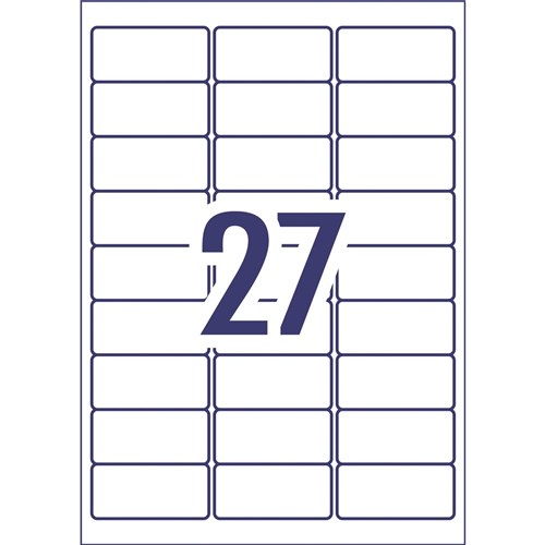 • Size: 63.5x29.6mm 405 labels, 15 sheets. 27 labels per sheet (27UP).