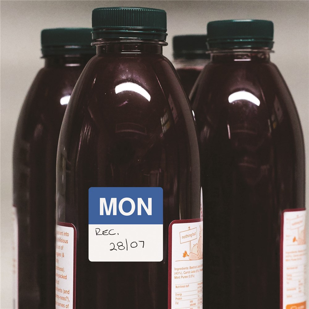 Visually identifies discard date of prepared food. Space to write the date on the label. Ideal for commercial refrigeration and food storage applications. Temperature -5 to +65C. Removable adhesive adheres to a variety of surfaces and removes easily.