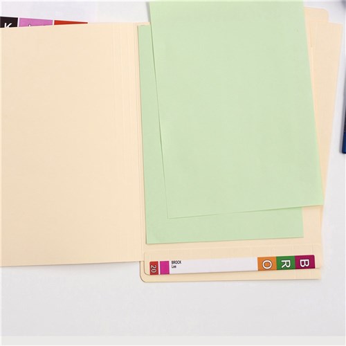 35mm expansion. Specially designed to make effective use of colour coding for your document storage. Manufactured from strong weight board with a reinforced side tab on which you can label colour code and file title labels. Use on an existing shelf unit, cabinet or mobile shelving unit. Use with Avery manual colour coding labels.