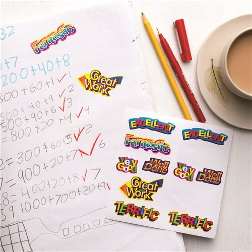Avery Merit Stickers Multi Captions Shapes 18x30mm Assorted Colours Pack Of 120