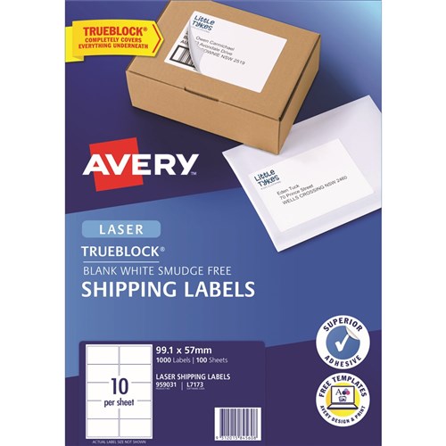 Avery Shipping Laser & Inkjet White L7173 99.1x57mm 10UP 1000 Labels 100 Sheets