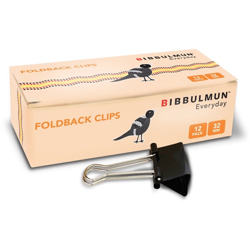 Foldback clips are 32mm wide. Available in pack of 12. The Bibbulmun Range contributes part proceeds to the Bibbulmun Fund which supports Indigenous communities by using targeted programs to develop them in life-changing ways.