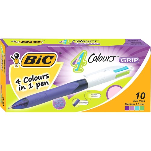 Bic 4 Colour Fashion Grip Ballpoint Pen Retractable Medium 1mm Box of 10