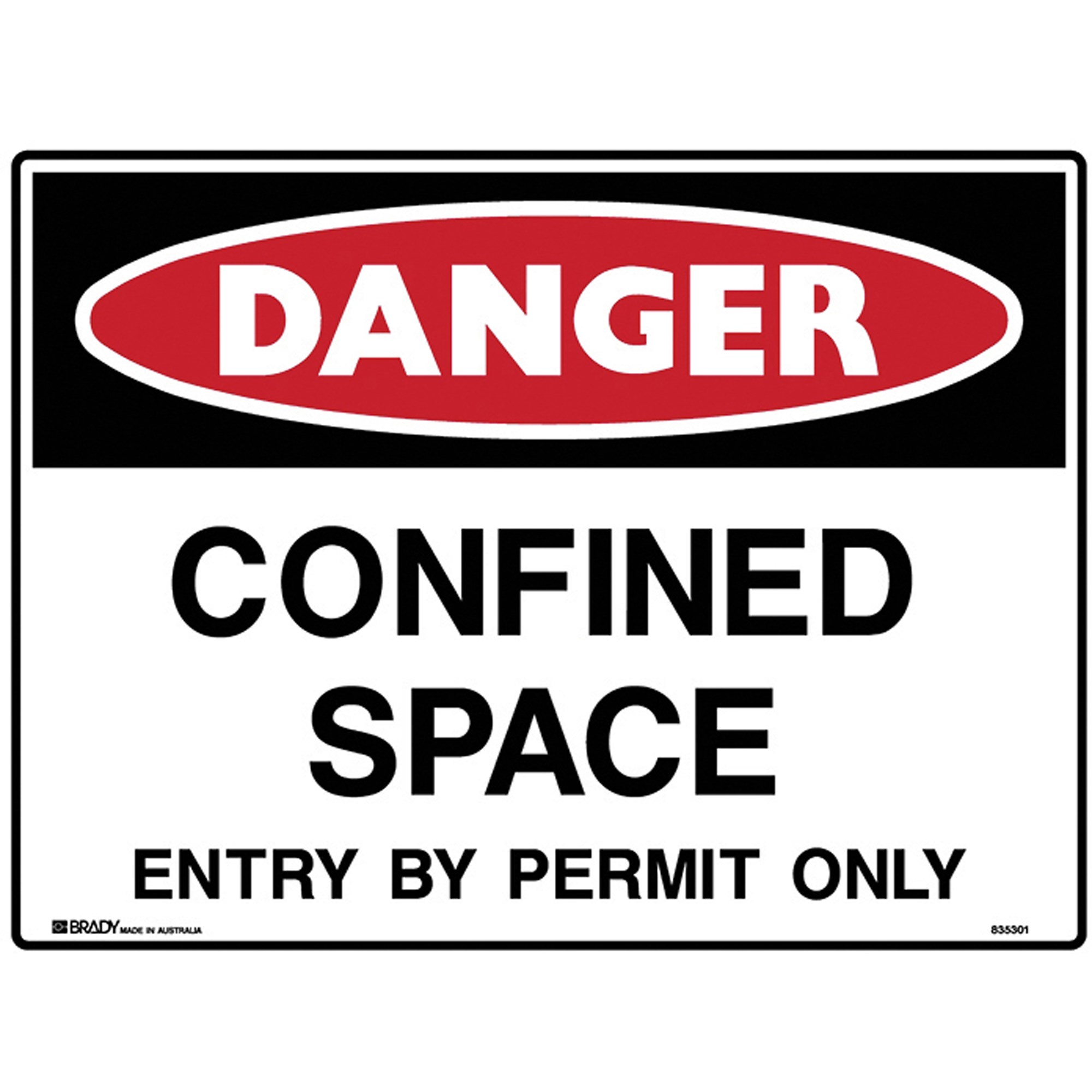 Brady Danger Sign Confined Space Entry By Permit Only 600W x 450mmH Metal