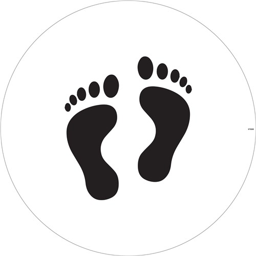 Wording: Stand Here 'Footprints' picto. Self-adhesive walk-on floor sign designed to bond to many different surfaces. Clear textured overlaminate protects warning message. Vibrantly coloured with an easily recognisable pictogram to ensure children are aware of the social distancing guidelines in effect. Easy to remove. Suitable for internal use. Australian made. Size: 300mm diameter.