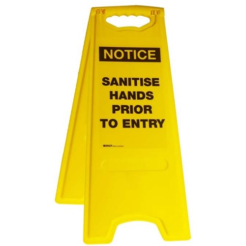 Brady Floor Stand Sign Sanitise Hands Prior To Entry Black/Yellow Polyethylene