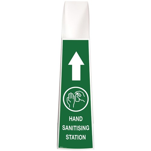 Light weight and portable. Printed illustration to direct people to hand sanitiser & promote good hand hygiene. Can be customised, add your logo for identification. Stand fits various hand sanitiser pump bottles from 500ml up to 5 litres. Integrated bottle neck tag to secure hand sanitiser to stand. Supplied in flat pack but simple to assemble and no tools required.