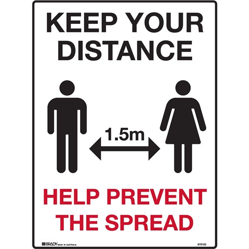 Brady Safety Sign Keep Your Distance 1.5M Polypropylene 300W x 450mmH White/Black