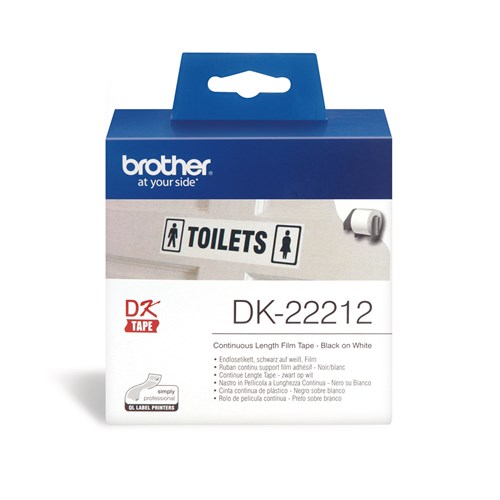Brother DK-22212 Label Rolls 62mmx15.24m Black on White Adhesive Film