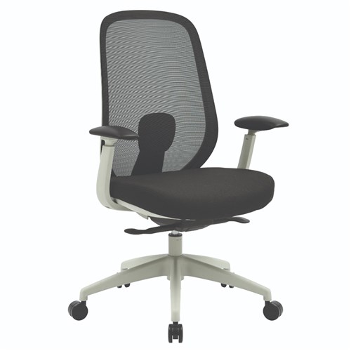 High Back Office Chair with arms and seat slide. Light grey frame black fabric seat mesh back. Weight Rating: 130kg. Indicated seat hours: 8+ hours. Seat Size: 485W x 455mmD. Back Width: 485mm Back Height: 565mm Base Width: 675W x 580mmD. Floor to Seat: 440-535mm. Overall Height: 1005-1100mmH. Synchronised adjustable seat and back rest angle. Depth adjustable seat slide. Nylon base on castors. 600mm. FSC certified. GreenGuard Gold. Also available without arms. 10 Year Manufacturer's Warranty. Delivery, installation and assembly charges may apply to furniture. Please enquire to confirm.