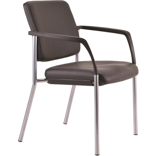 Buro Lindis 4 Leg Chair With Arms Black PU Seat And Back Silver Frame