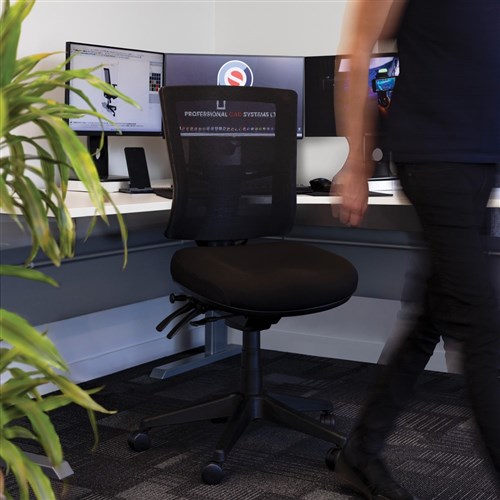 Fabric seat mesh back black. Chair Capacity: 180kg. Composition: Upholstered seat and mesh back, nylon base. Seat Width: 520mm. Seat Depth: 420-470mm. Back Height: 530mm. Indicative Seating Time: Multishift 24/7. 10 Year Manufacturer's Warranty. Delivery, installation and assembly charges may apply to furniture. Please enquire to confirm.