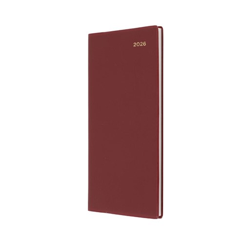 Bound in durable, welded PVC, the Belmont is available in black, burgundy and navy. Printed on white paper. 3 year calendars. Forward year planners. Calendar notes. Australian and New Zealand holidays. Notes. Size: 176 x 88mm. FSC Certified.