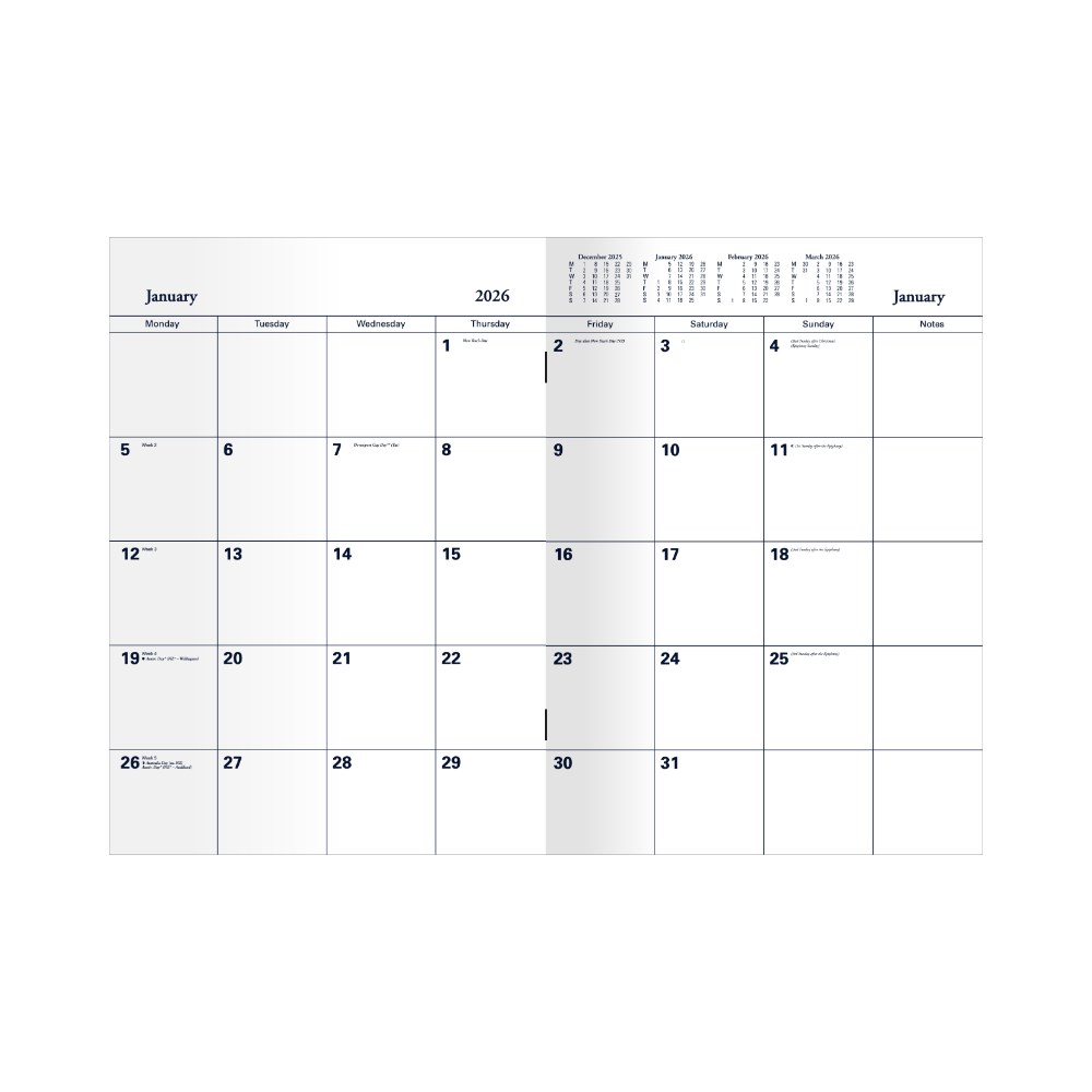 Offers reliable and easy-to-use format. Soft cover. Lay flat opening. Tried and tested layouts. Perfect for easy-to-read planning. Australian and New Zealand holidays. Size: 297 x 210mm. FSC Certified.