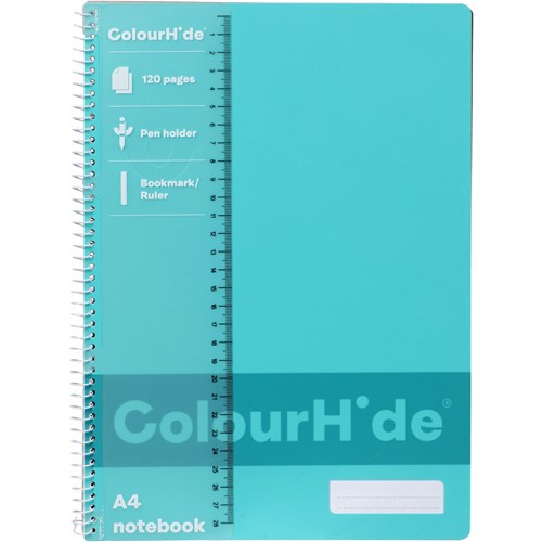 ColourHide Spiral Notebook A4 Side Bound 120 Page Aqua