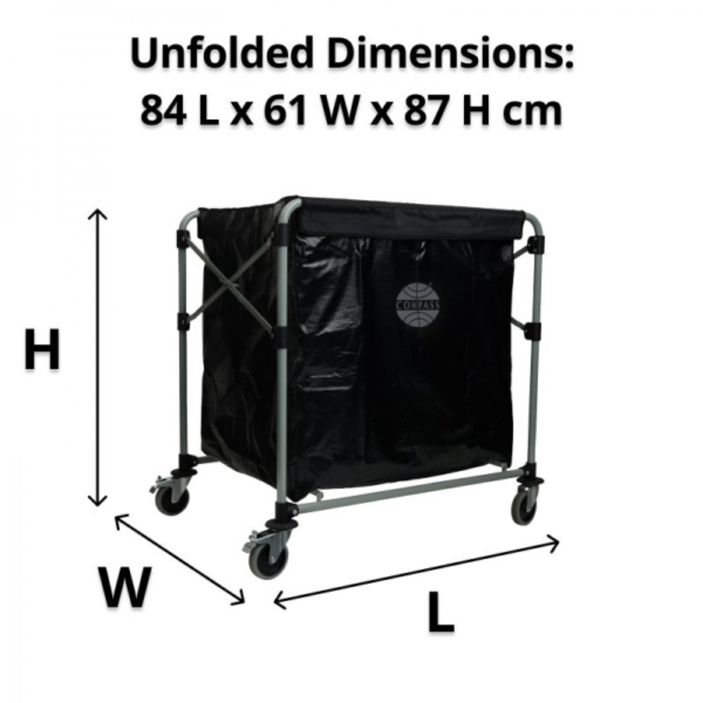 300 Litre Capacity Bag Bag Made From Strong Steel Frame High Quality Castor Wheels Collapsible Frame Reduces Width By 75% For Efficient Storage 2 Wheel Locks Size Open: 84 W X 61 D X 87 H Cm Size Closed: 84 W X 10 D X 87 H Cm