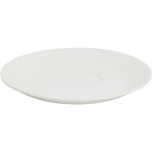 Saucer for stackable cup code 526242. Elegant white strong reinforced porcelain. Ideal for office or boardroom or general usage. Thermal shock resistant. Microwaveable and dishwasher safe. Saucer Diameter: 153mm.