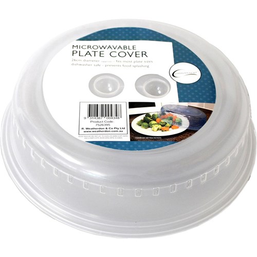Reduces spatter from reheating in microwave. Easy lift-off lid design. Dishwasher safe. Air vents on side. Prevents food splashing. Fits most plate sizes. Size: 260mm Diameter.