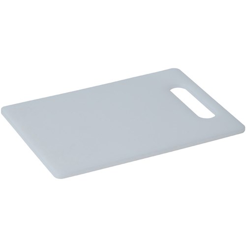 Thick plastic. Dishwasher safe. Dimensions: 345L x 245W x 7mmH.
