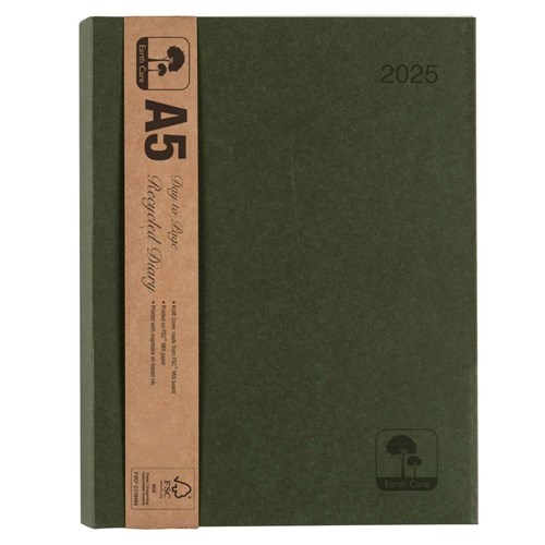 For the environmentally conscious. Earthcare Diaries offer an opportunity to say 'I care'. Features include a cover constructed from 100% recycled fibres with 30% post-consumer waste. Pages are made from FSC MIX paper with 60% recycled post-consumer waste and printed using vegetables oil-based inks. Includes Australian and New Zealand holidays and school terms. Twin wire binding. 1 hour appointment times 9am - 5pm, Monday to Friday. Manufacturing Code: 57SEC23.
