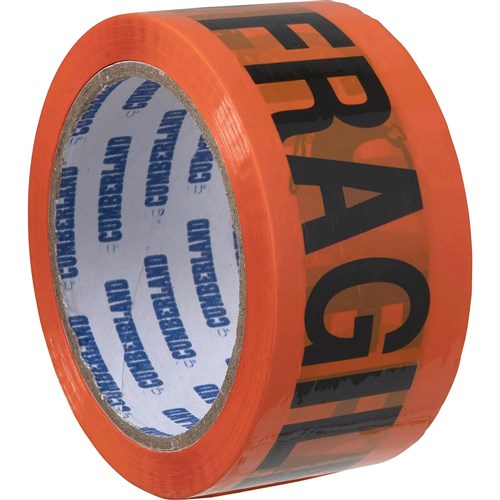Cumberland Fragile Tape 48mm x 66m Black On Orange Pack Of 6