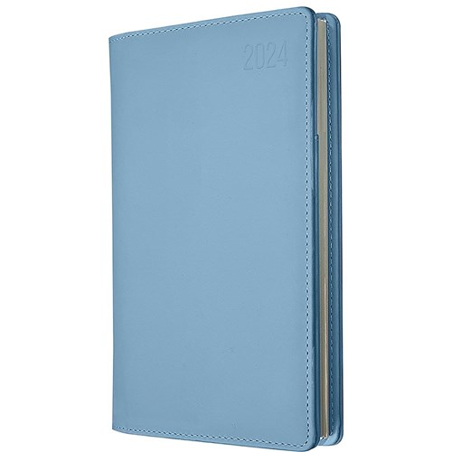 The Associate II diary offers the sought after 'lay-flat ' wiro binding and clean internal layouts in stylish Light Blue colour, with the addition of both document pocket and business card sleeve maximising versatility. Features: Lay Flat Opening Ribbon Marker Week to view layout Australian and New Zealand Holidays. 3 Year Calendars Current and Forward Year Planners International Holidays International Dialling and Time Zones Staff Leave Planner Addresses and Notes Soft-touch Padded Covers. Size: 187x99mm.