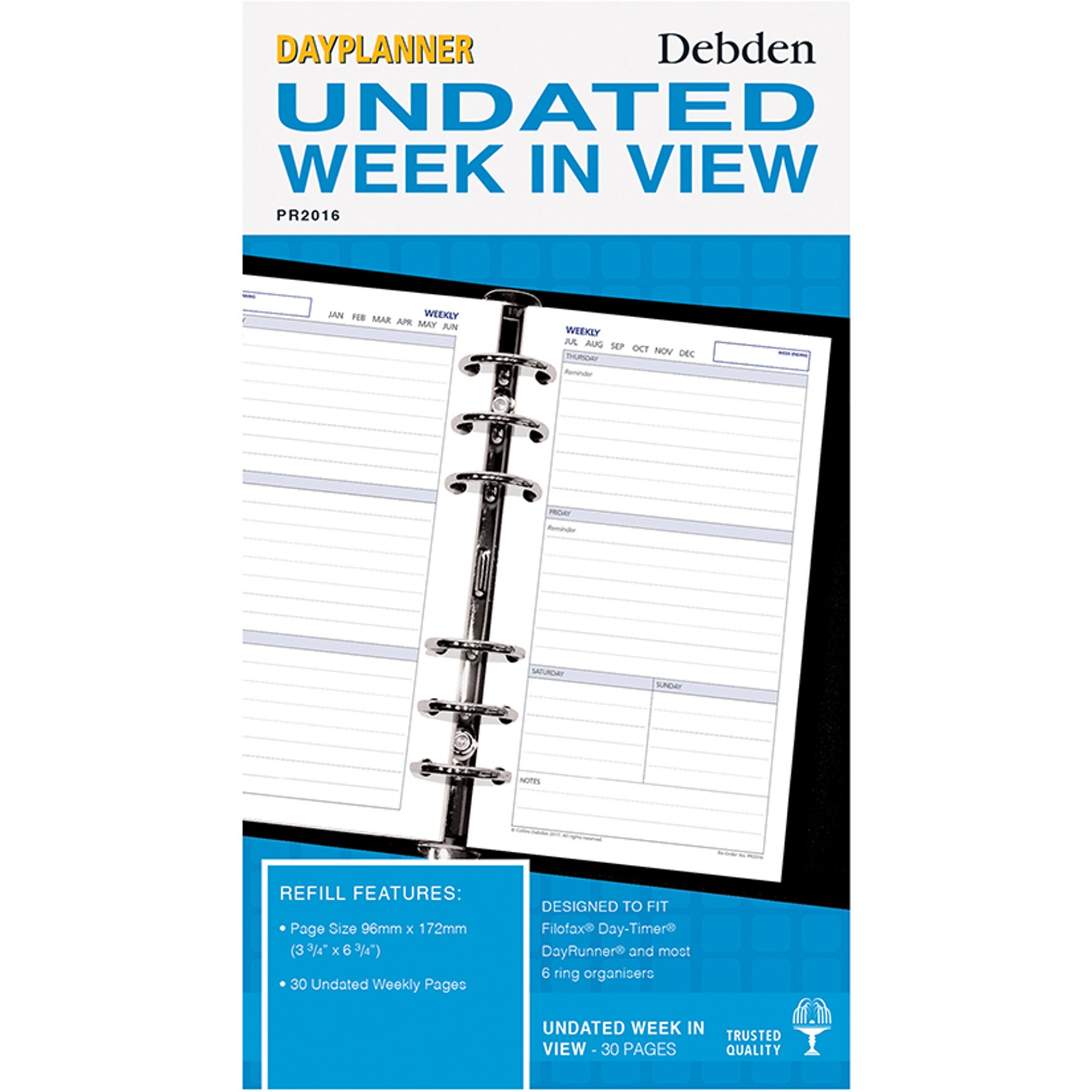 Debden Dayplanner Refill Undated Week To View 175x96mm Personal Edition