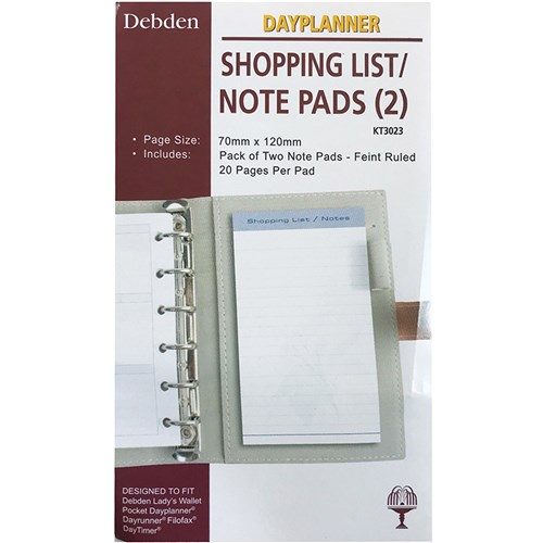 Debden Dayplanner Refill Shopping List / Note Pad 2pk 120x80mm Pocket Edition