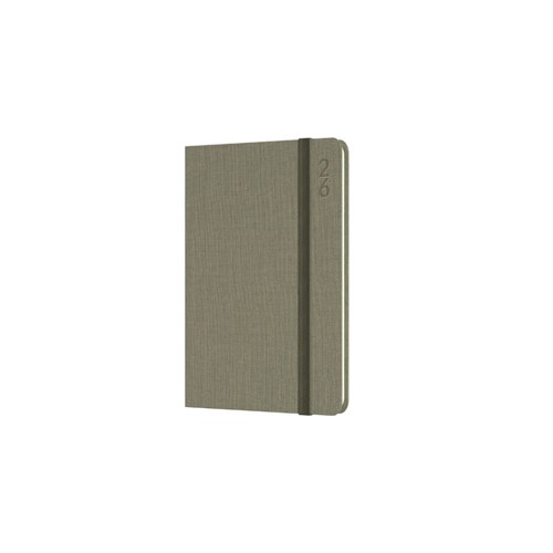 Textured fabric cover. 3 year calendars. Current and forward year planners. Financial summary. International holidays. International dialling. Lay flat opening, ribbon marker and elastic closure. Size: 148 x 74mm. FSC Certified.