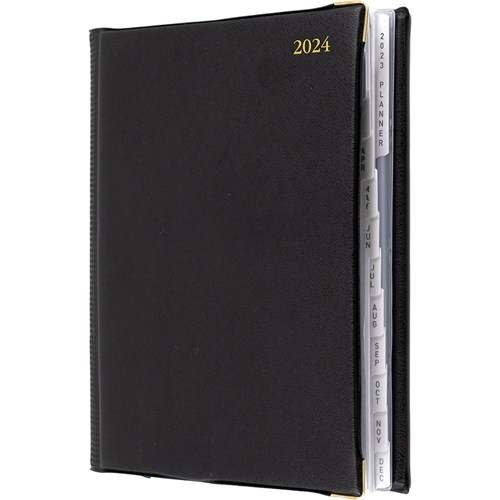 The Elite planning system is more than a diary. With its pen holder, personal directory and current and forward year planners, the Elite is the perfect organisational tool for executives everywhere. Features: Executive Size (246mm x 164mm) Day to page layout. Appointment times from 8am - 8pm hourly. Flat Lay Opening Ribbon Marker Tabs Australian and New Zealand Capital City Maps and Holidays World Map. 3 Year Calendars Current and Forward Year Planners International Holidays International Dialling and Time Zone Map Staff Leave and Financial Summary Monthly Tabbing Personal Directory Memo Notepad. Size: 196x256mm. Manufacturing Code: 1101.V99.