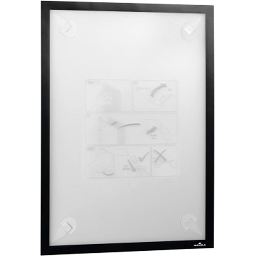 The ideal solution for displaying information on sensitive surfaces. Presents information in a high quality and professional way. Quick insertion and exchange of documents via a fold-back magnetic frame. Can be attached to wallpaper, wood and most plastics thanks to the use of adhesive strips. Fields of application: for documents such as orientation signage and other information.
