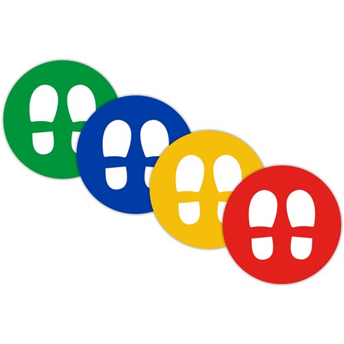 Designed for application directly onto asphalt and concrete pedestrian surfaces. Comes in a set of 4 different colours - green, red, blue and yellow. The different colours can be used when assembling students or giving instructions for students lining up. High slip resistance - Tested in accordance with AS 4586:2013 Results: R13 Rating, Class P5. Made in Australia.