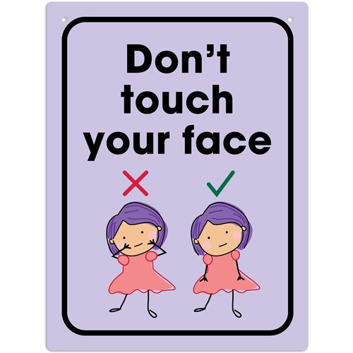 Durus School Sign Wall Mount Don't Touch Your Face 225W x 300mmH Polypropylene Purple