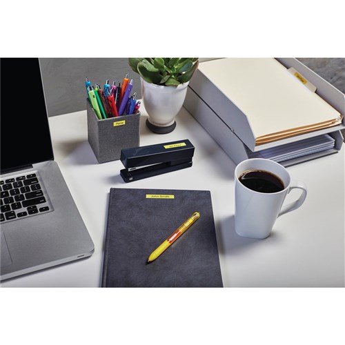 Suits Dymo® LM100, LM100+, LM120P, LM150, LM200, LM210D, LM220P, LM260P, LM300, LM350, LM360D LM400, LM450, LP100, LP150, LP200, LP250, LP300 and LP350 machines. Also suitable for all Dymo® models #500 through to #5500. Available in 6, 9, 12, 19 and 24mm tape widths (varies by colour). Resistant to water, oil and will stick to most clean and flat surfaces. Features a split backing paper providing quick and trouble free label application.