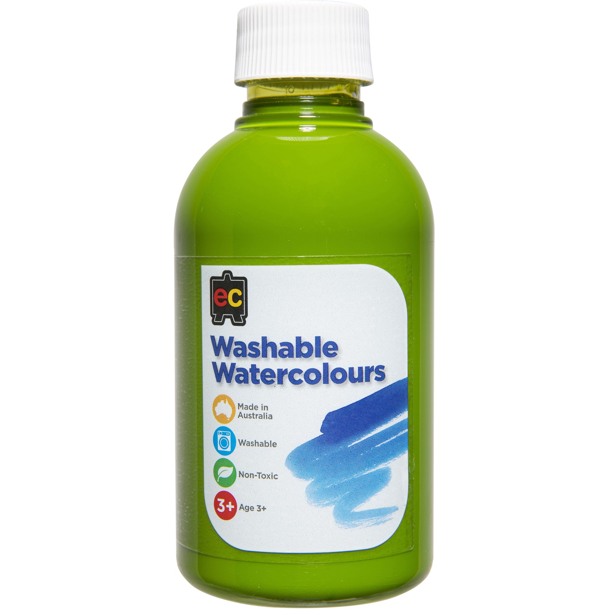 These Australian made, non-toxic, Washable Watercolours provide both brilliant colour and hours of creative fun to any classroom or home. With dazzling colours available in 250ml bottles, these paints will help you achieve that special watercolour effect! Can be used in a variety of ways including watercolour painting, tinting pigments or as craft dyes. Suitable for a wide variety of surfaces including paper, cardboard, glue, fabric, wood and wool. Use with a variety of applicators including brushes, spray bottles, droppers and sponges. Are washable from skin and fabrics.