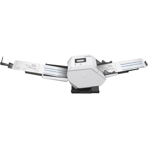 Sheet Feed, one pass duplex A3 colour scanner. Up to 90 ppm / 180 ipm. 120-sheet Auto Document Feeder; plus, peak daily duty cycle of 40,000 sheets. Vertical feed for high-volume scanning; horizontal feed for sealed envelopes, folded papers and delicate sheets. Scan documents up to 12' x 17', folded pages, plastic cards, sealed envelopes, passports and more. Large, adjustable, 2.7' touchscreen display for easy access to scan jobs, settings and maintenance features. Flexible design fits your workspace and makes storage easy. TWAIN and ISIS drivers included. Slow Mode for delicate sheets; Double-feed Detection to prevent missing pages; also features Paper Protection function, Power Separation Mode and more. 1 Year Manufacturer's Warranty.
