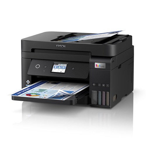 Cartridge-Free Printing - integrated high capacity ink tank system. Includes enough Ink to Print up to 14,000 pages black / 5,200 colour - equivalent to about 161 individual cartridges. Load Paper Less Often - high-capacity 250 sheet paper tray. Easy Touch-and-Swipe Setup and Navigation - large 2.4'' colour touchscreen. 30-sheet Auto Document Feeder; auto 2-sided printing; borderless printing up to A4; fax. Ultimate Wireless and Networking - easily print from iPad, iPhone, Android tablets and smartphones; includes Wi-Fi Direct 4 plus Ethernet. Exclusive Auto-Stop Ink Bottles - uniquely keyed for easy filling of each colour. Maximum Print Quality: 4800 x 1200dpi. Max Speed: 15.5ppm Black and 8.5ppm colour print. 1 Year Manufacturer's Warranty.