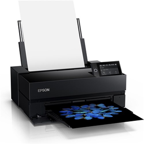 Print speed: A4 2 minutes, A3+ 3.28 minutes. Borderless 10 x 15cm 48 seconds. A3 inkjet printer that delivers even higher performance exhibition-quality prints with new and professional features, all achieved within a space-saving A4 footprint. Delivering an extended colour gamut producing vibrant and rich prints. richer blacks, better contrast and better tonality, all while reducing gloss differential in dark areas on glossy medias. New advanced Black and White Photo Mode comes with preset modes - neutral, warm, cool or sepia - to aid users to effortlessly achieve stunning neutral or toned prints. These new ink cartridges come in 10 different colours including 4 types of black and 6 colours including Violet ink which helps to expand the colour gamut on these new models. These inks also offer great lightfastness and if displayed properly will last a Built in roll paper unit making continuous, high quality photograph printing absolutely straightforward. This feature makes the printer ideal for photographers. Border free photo printing on sizes up to A3+. Supports high quality printing directly on to the surface of compatible inkjet printable 8cm and 12cm CD-Rs and DVDs. Wired or wireless connectivity. Built-in 4.3 inch touchscreen. 1 Year Manufacturer's Warranty.