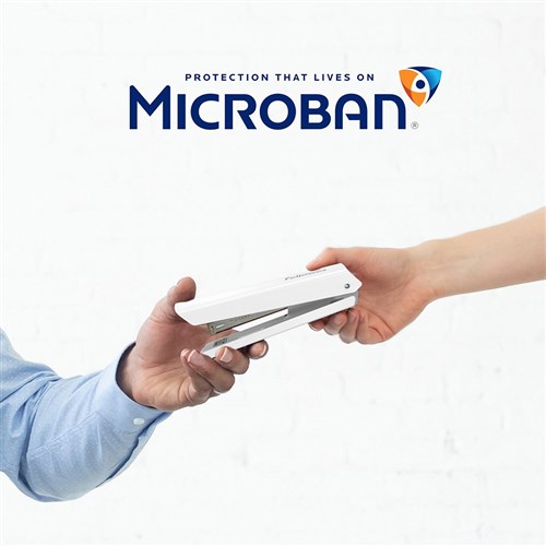 Full-strip desktop stapler for up to 20 sheets. Durable construction and jam-free design. Microban® antibacterial technology works 24/7 for an added level of hygienic product protection. Tacking & pinning options for attaching documents to bulletin boards or for temporary stapling. Low staple indicator window. Compatible with 24/6 and 26/6 staples. 10 Year manufacturer's warranty.