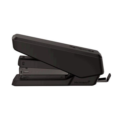 Effortlessly staples up to 25 sheets. Durable construction and jam-free design. Constructed with premium materials and a durable metal housing. Includes a detachable staple remover and a paper alignment guide. Low staple indicator window. Microban antibacterial technology works 24/7 for an added level of hygienic product protection. Compatible with 24/6 and 26/6 staples. 10 Year Manufacturer's Warranty.
