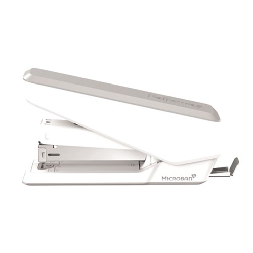 Effortlessly staples up to 25 sheets. Durable construction and jam-free design. Constructed with premium materials and a durable metal housing. Includes a detachable staple remover and a paper alignment guide. Low staple indicator window. Microban antibacterial technology works 24/7 for an added level of hygienic product protection. Compatible with 24/6 and 26/6 staples. 10 Year Manufacturer's Warranty.