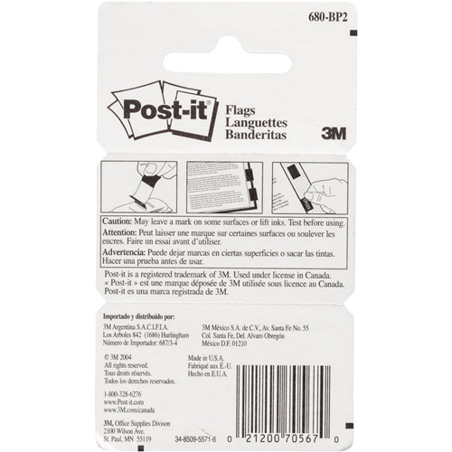 Post-it® Original flags come in a handy twin packs to ensure that you never run out of your favourite flags. Ten colours to choose from. Clear flag. Coloured tip. Will not obscure page or create ghosting on faxes and photocopies. Size: 25x44mm. 100 flags per twin pack.