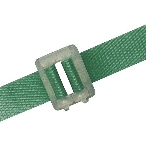 Plastic buckles can be hand applied to ensure 15mm strapping does not come loose in transit. Hand application and tension. For use with 15mm plastic strapping.
