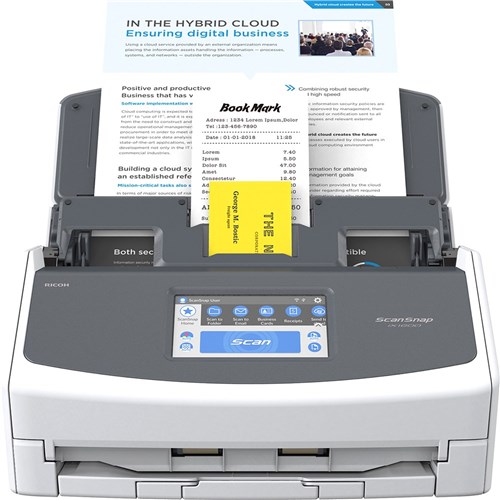 • ScanSnap iX1600 is the evolved flagship model of the ScanSnap series, enabling scanning at higher speeds of 40 ppm/80 ipm (A4-size documents, color, 300dpi).