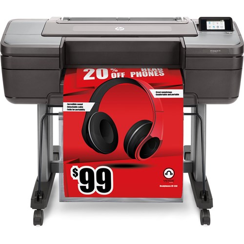 Fast: 66.9 m Print resolution: Up to 2400 x 1200 optimized dpi. Connectivity: Gigabit Ethernet,Hi-Speed USB 2.0 certified interface for direct printing from USB flash drive. 128 GB (virtual) memory. Internal Storage: 500 GB self-encrypting. Finished output handling: Two automatic roll feeds, smart roll-switching, top sheet feed, media output bin, automatic horizontal cutter and vertical trimmer (cuts all HP Z-series printer-qualified media, including most canvas). Media types: Photographic, fine art printing material, self-adhesive, banner and sign, bond and coated, backlit. 6 print cartridges: cyan, magenta, yellow, matte black, photo black, chromatic red. 3 Year Manufacturer's Warranty.
