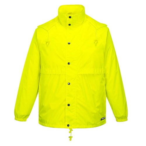 Lightweight waterproof fabric with taped seams. Lightweight packaway jacket with pack away hood. Back vent with cool flow mesh. Stud front opening. Elasticated cuffs. 3 storage pockets incl. side zip and internal chest. Print access for corporate branding. Additional taped seams for protection. Available in sizes Small to 5XL. Materials: Shell 100% Polyester PU Coated 70g; Lining 100% Polyester Mesh 60g.