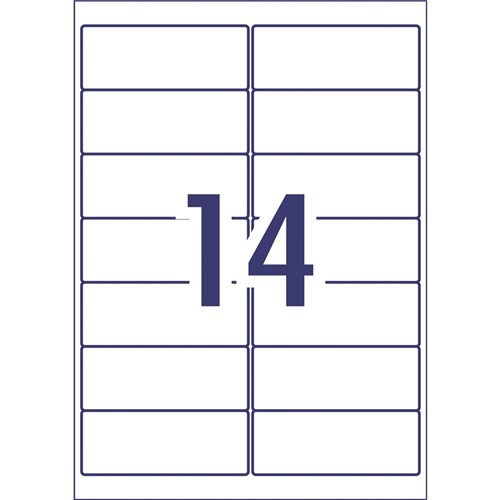 • Size: 99.1x38.1mm 1400 labels, 100 sheets. 14 labels per sheet (14UP).